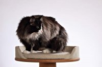 Leider ist sie, im Gegensatz zu ihren Geschwistern, nicht so groß und kräftig geworden, wie wir es uns erwünscht hatten. Mit ihrem ersten Wurf hat sie jedoch alle unsere Zweifel und Bedenken zerstreut. Wir hoffen, dass sie uns noch mehr so typvolle Kitten schenkt.