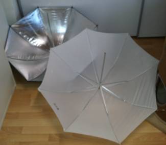 Bei beiden Schirmarten kann die Weichheit des Lichtes beeinflusst werden indem man die Schirme unterschiedlich tief in die Halterung steckt.
