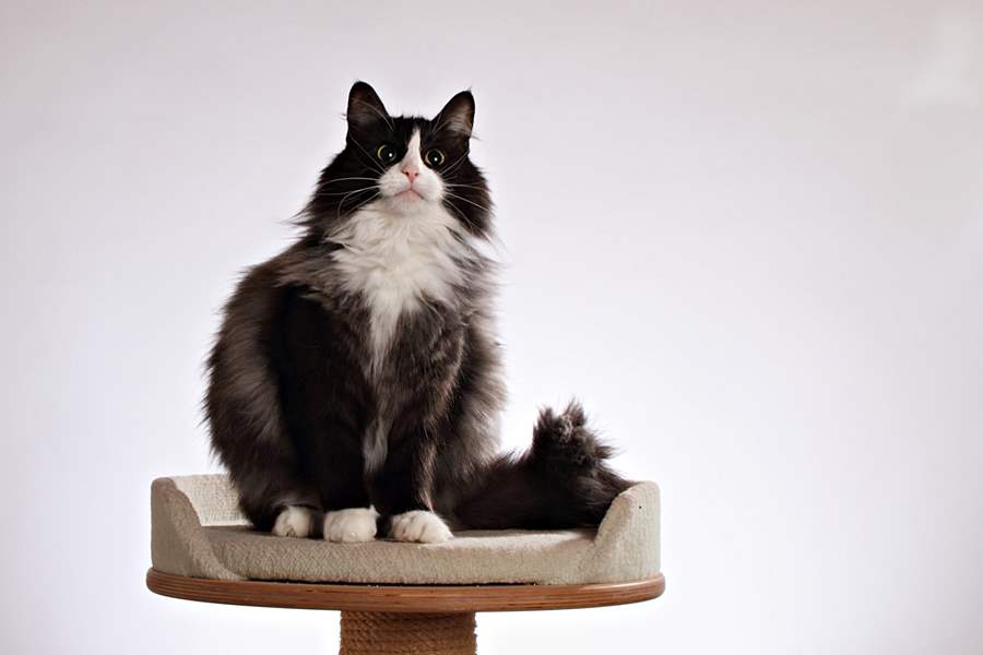 in einer exzellenten Fellqualität, ein gerades Profil, große perfekt gesetzte Ohren, ein kräftiges Kinn und einen langen buschigen Schwanz, den sie meist hoch erhoben trägt.